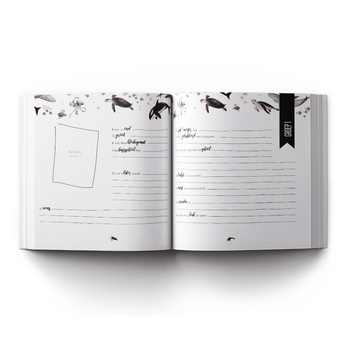 Een invulboek met ruimte voor portretfoto’s, klassenfoto’s, mooie verhalen, te gekke knutselwerkjes en gave tekeningen van ieder schooljaar op de basisschool. Dit boek heeft een hardcover en is gedrukt op 170gr natuurpapier. aantal pagina's: 72 excl. kaft