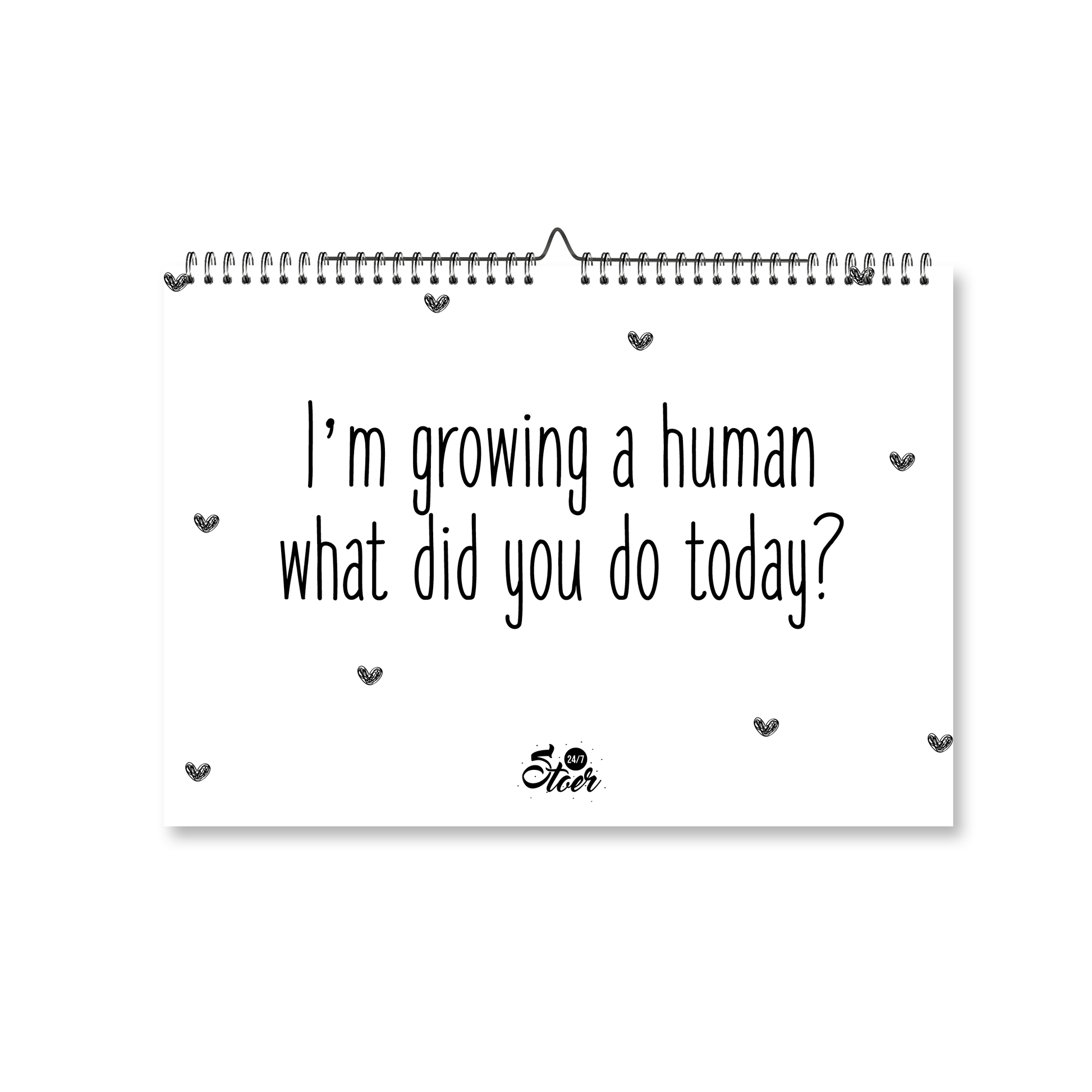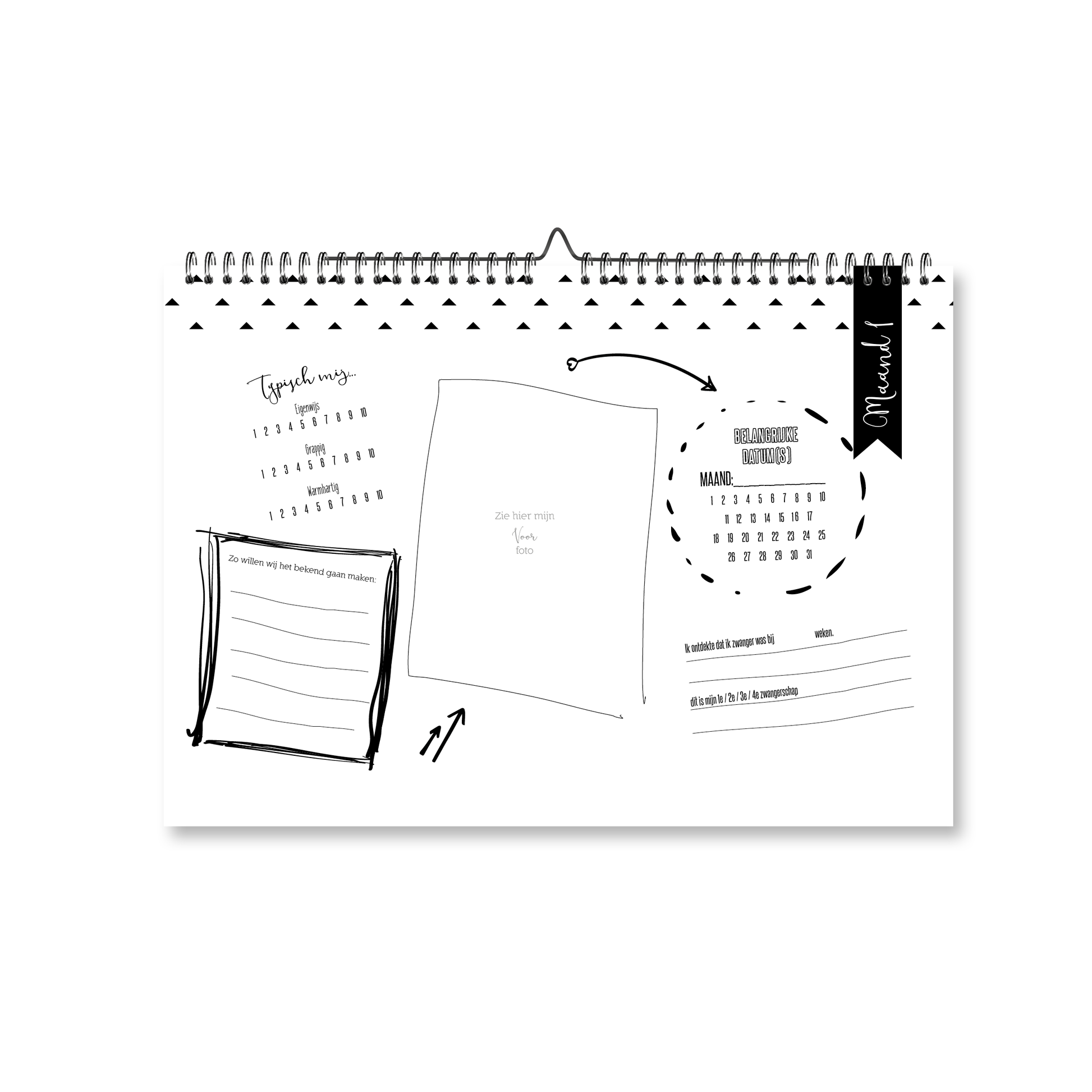 9 maanden zwangerschapskalender. Ken je dat dat je geen mens bent om per week alles bij te houden maar je wilt wel graag een herinnering voor later? Dan is dit ‘het’ cadeau voor jou (of een vriendin natuurlijk). Plak elke maand een foto van je groeiende buik op en geef aan op schaal van 1 tot 10 hoeveel last jij hebt van kwaaltjes. Zo heb jij na 9 maanden een mooie compacte herinnering aan je zwangerschap. Achterin is er ruimte om een mooie foto van jullie kers verse kleinte te plakken.