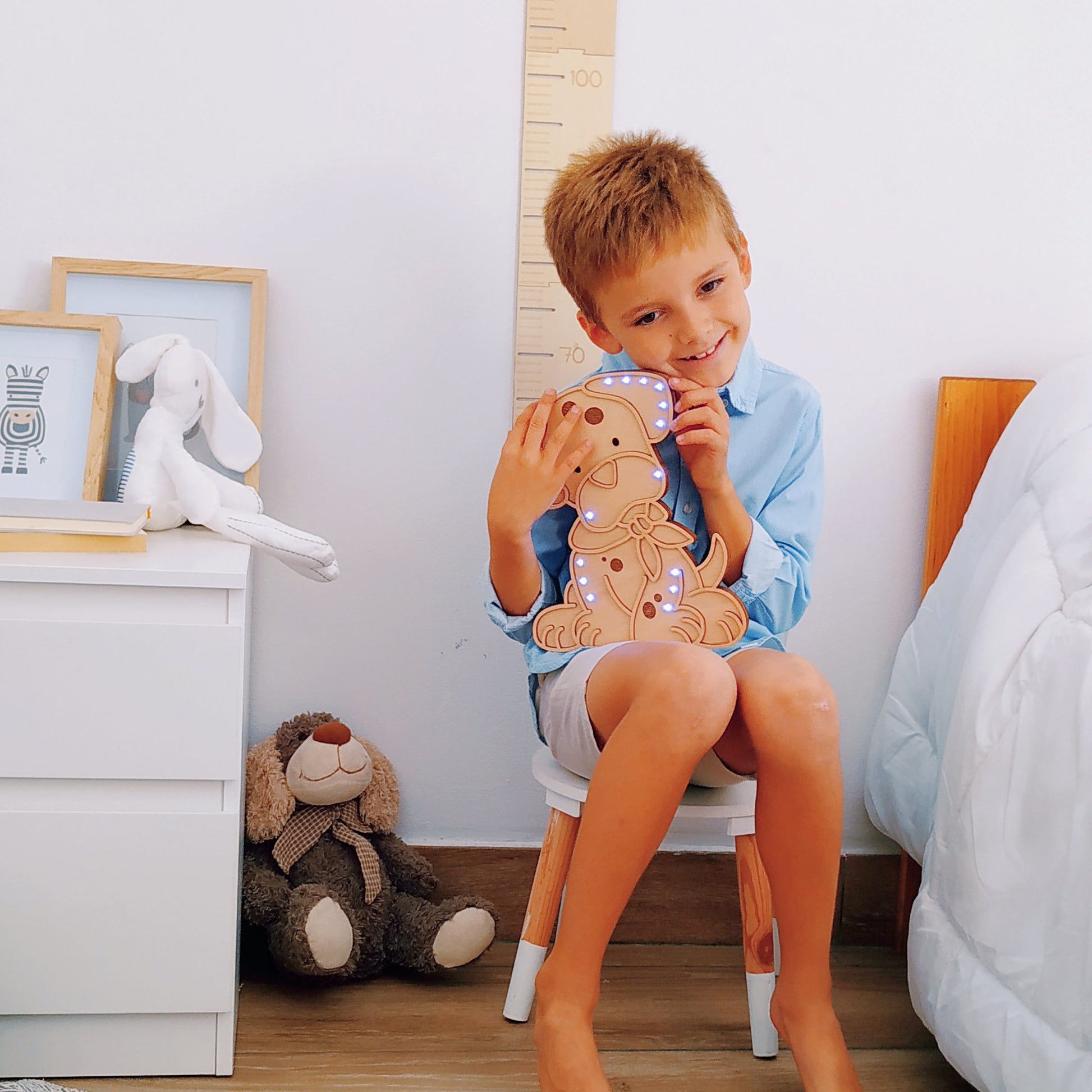 Houten kinderlamp met led lichtjes om aan de muur te hangen of voor op het nachtkastje. Een schattig decoratie-element voor de kinderkamer, maar ook praktisch en functioneel. Ideaal voor je eigen kinderen of als cadeau.