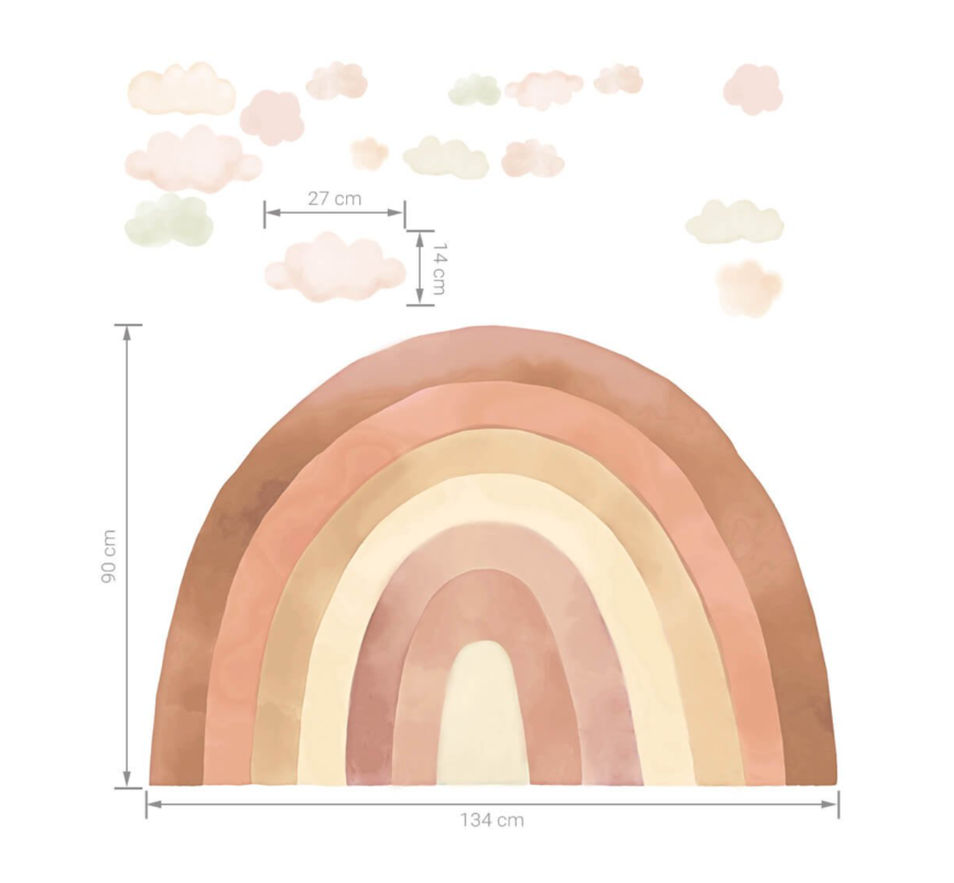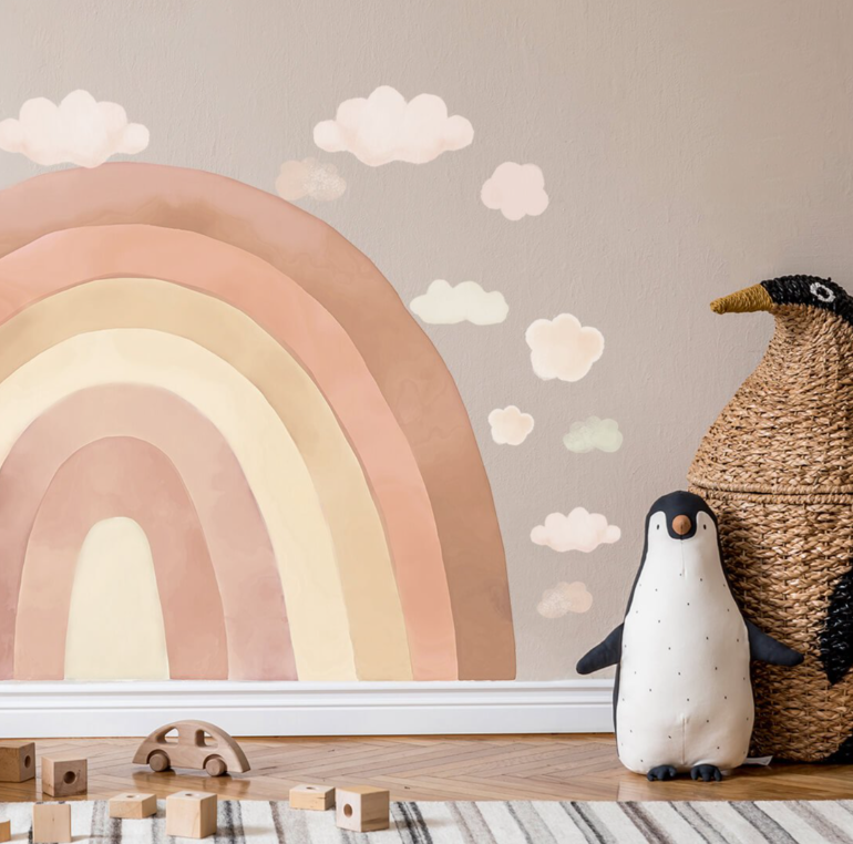 Regenboogstickers zijn dankzij het grote oppervlak ideaal om achter het bed of in de kinderhoek te plakken. Ze zijn een prachtige decoratie en beschermen tegelijkertijd de muur tegen vuil of beschadiging.